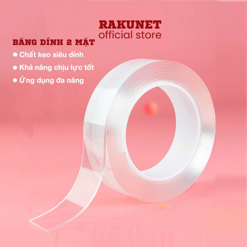 Băng dính 2 mặt siêu dính Rakunet là một trong những sản phẩm băng dính 2 mặt siêu dính chất lượng cao trên thị trường hiện nay. Sản phẩm này được làm từ chất liệu nano, có khả năng bám dính và chịu lực kéo rất tốt.