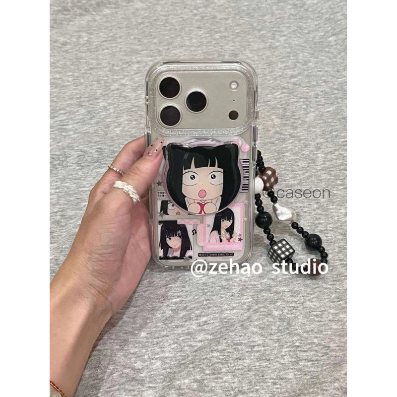 🔥 Giá đỡ từ tính Phim hoạt hình Anime Vỏ điện thoại từ tính cho iPhone 17 Pro Max 16 15 14 13 Pro có dây đeo đính cườm và chân đế Vỏ bảo vệ màu đen dễ thương thời trang đang giảm giá!