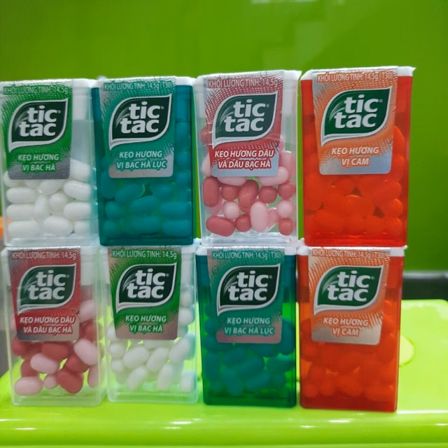 - Kẹo ngậm Tictac: Có hương thơm dễ chịu, cảm giác mát lạnh kéo dài.