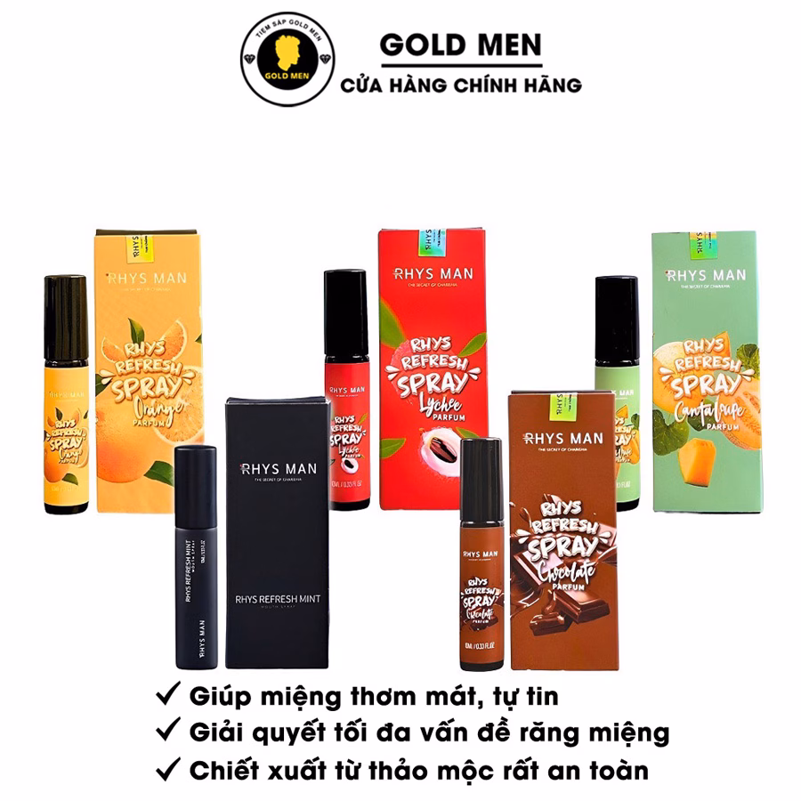 🔥 Xịt thơm miệng Rhys Refresh hương Cà Phê & hương Bạc Hà, Chocolate, Dưa lưới, Vải, Cam RHYS MAN 10ml đang giảm giá!