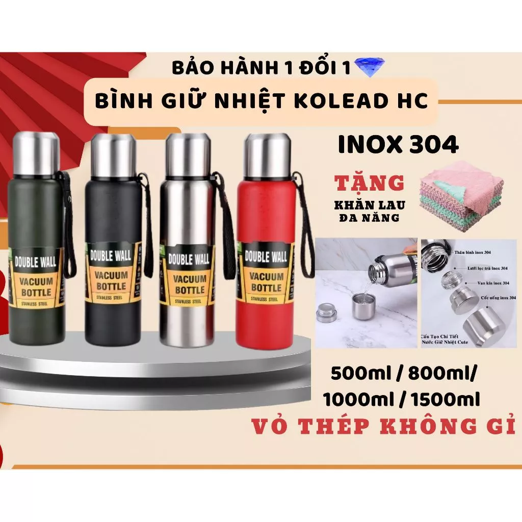 🔥 [LOẠI XỊN] Bình giữ nhiệt nóng lạnh chất lượng cao Inox 304 DOUBLE WALL KOLEAD HC 3 lớp – Dung tích 500ml/800ml/1L/1,5L đang giảm giá!