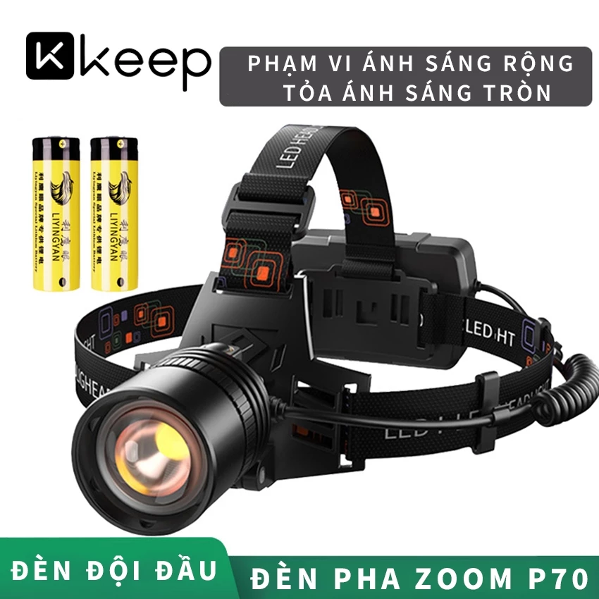 Đèn pin đội đầu KEEP siêu sáng chiếu xa cảm biến vẫy tay Zoom xa gần chống nước pin trâu