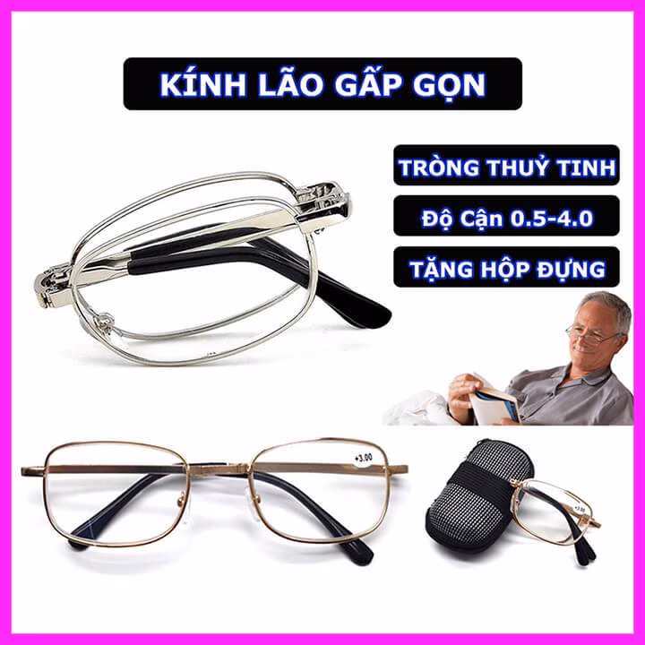 🔥 Kính lão tròng thuỷ tinh gọng Kim Loại Có Thể Gấp Gọn Tiện Dụng, Kính Trung Niên Đọc Sách Đủ +0.5 Độ Đến 4.0 Độ đang giảm giá!