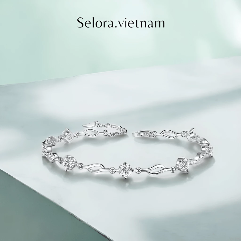 🔥 Lắc tay RIVA kim cương moissanite 7 viên 5 li phối bạc sang trọng đang giảm giá!