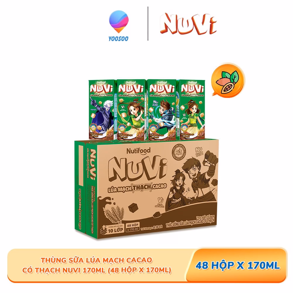 🔥 Thùng 48 Hộp NuVi Sữa Lúa Mạch Thạch Cacao/ Dâu/ Thạch Cam/ Thạch Nho 170ml – NUTIFOOD SHOP đang giảm giá!