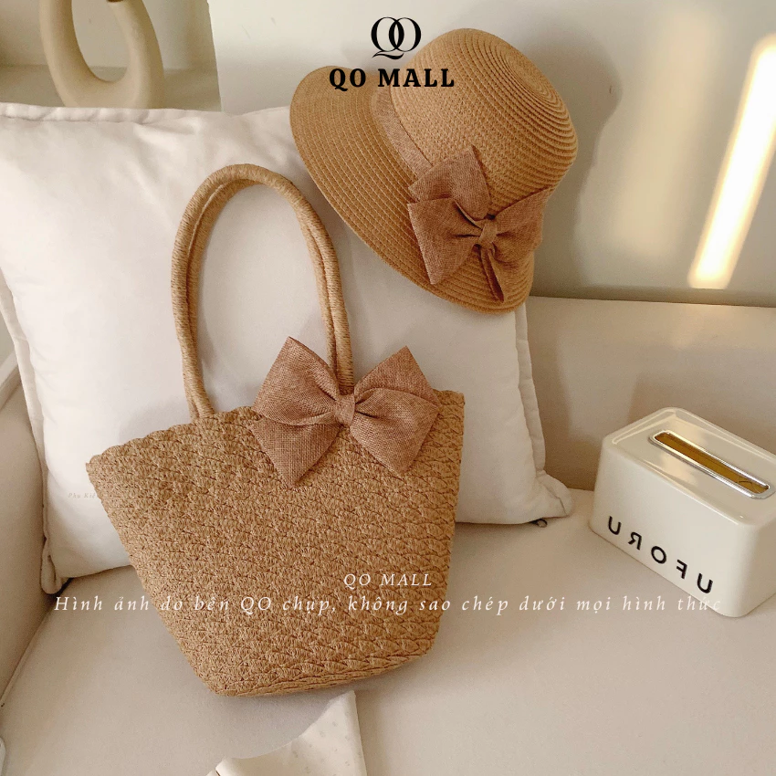 🔥 Combo Túi Mũ Cói Đính Nơ Đi Du Lịch, Mũ Vành Rộng Phong Cách Tinh Tế T21M21 QO MALL đang giảm giá!