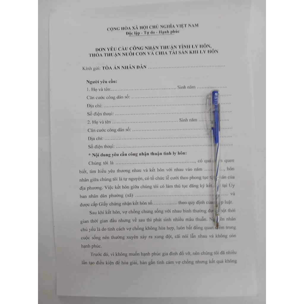 Tận dụng sản phẩm ĐƠN THUẬN TÌNH SOẠN SẴN 04 BẢN TẶNG KÈM 01 CÂY VIẾT GIẤY A4