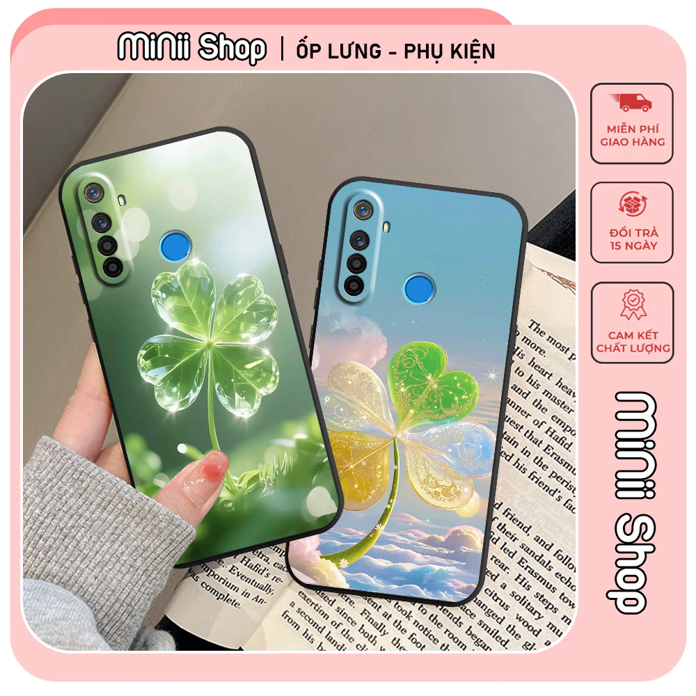 Một trong những sản phẩm đáp ứng đầy đủ các tiêu chí trên là Ốp lưng dành cho Realme 5 / 5i / 5 Pro / C3 in hình cỏ bốn lá may mắn. Sản phẩm này được thiết kế với:
