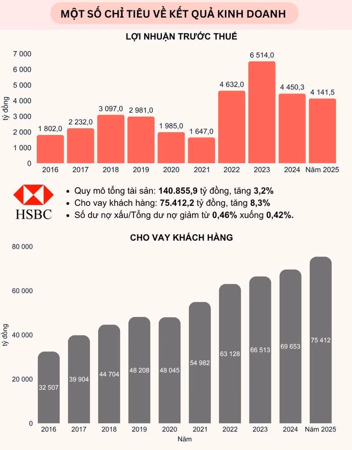Báo cáo tài chính năm 2025 của HSBC Việt Nam cho thấy sự tương phản giữa áp lực chi phí lãi và khả năng kiểm soát rủi ro, giúp nâng cao chất lượng tài sản.